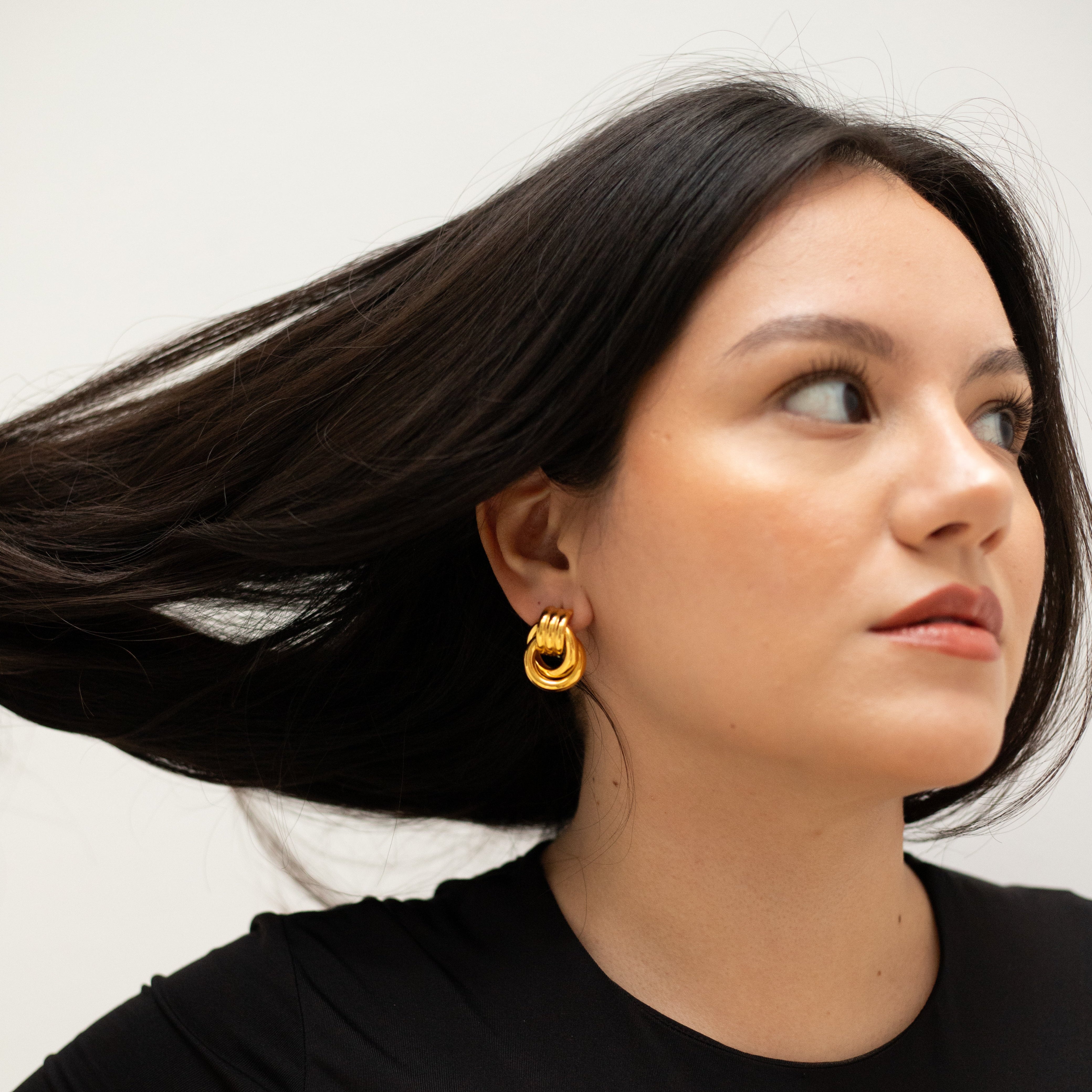 Aros dorados con diseño de nudo grueso, modernos y llamativos. Una pieza statement que eleva cualquier look con un toque chic y sofisticado.